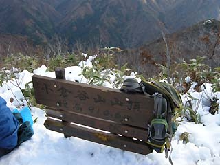 10:17 頂上 後方は白山です 一人の踏み跡あり(小生は2番目)