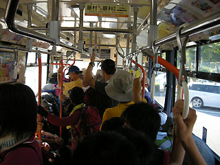 | 6:40 満員のバス出発! 運転手さんも初日で、途中エンスト?! |