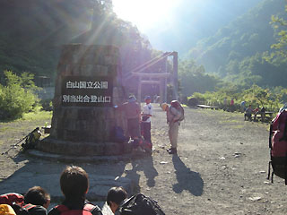 | 7:02 逆光の別当出合出発。団体さんが多い。 |