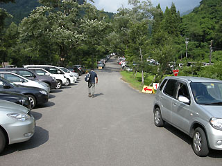 | 15:25 市ノ瀬駐車場にはたくさんの車。体を拭いて着替え、帰路につく。 |