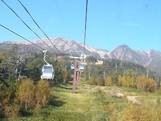 8:05 ゴンドラから御嶽連峰をガラス越しに撮る