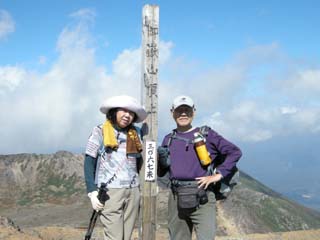 9:40 女人堂と遠く左は乗鞍岳。(その後方に槍ヶ岳)