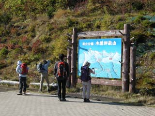8:12 ゴンドラを下りると案内板。(御嶽山まで3。9km)