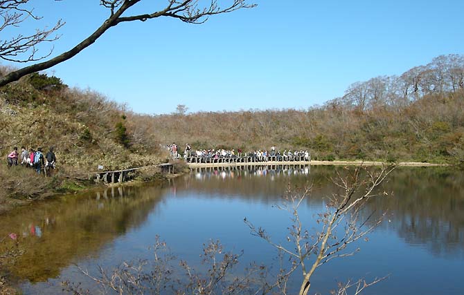 もちろん紅葉を期待したが、登り口はまだ青く、池周辺はもう終わりました、とは自然解説員の弁。
