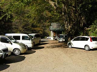 9:24 大きな樹齢400年のカツラの木(右)がある駐車場