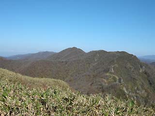 12:42 中央のピークが「三周ヶ岳」 縦走路が白く見える