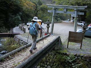 9:24 駐車場出発 鳥居をくぐり橋を渡って左へ進む