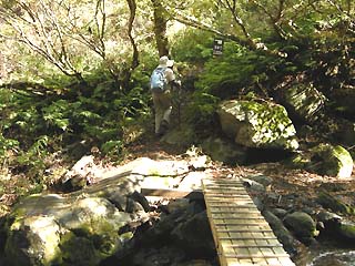 10:01 橋を2回渡ると、うっそうとした林の中に「トチノキ」の巨木が・