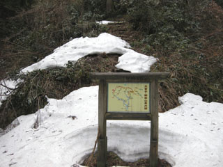 | 8:40 登山口着 登り口の雪がじゃまだ! |