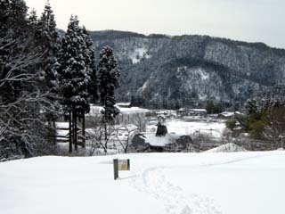 8:47 橋の手前で熟女2人がカンジキを装着している