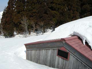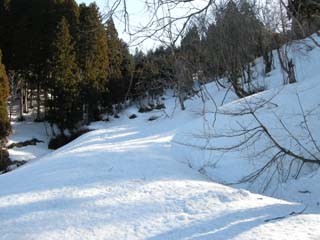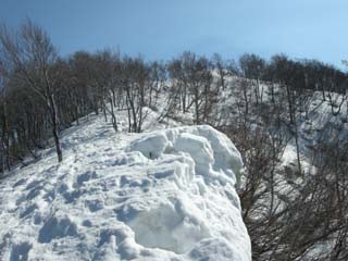 雪は固かったが下を見たらビビッテしまった。(さすがにスパイク長靴にアイゼンを着ける)