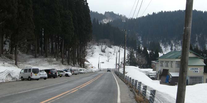 12:30 駐車場着 (二人の若者夫婦はヒッチハイクで国道を・・・・)