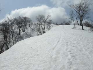 北丈競山よりカンジキを着け、天候がだんだんとよくなって来たので