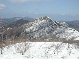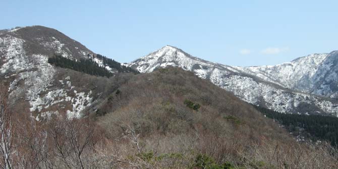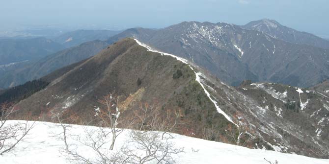 12:10 北丈競山への稜線(後方右から富士写ヶ岳、小倉谷山、火燈山)