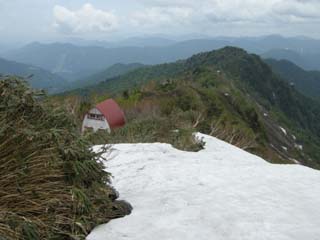 12:43 この位置の雪渓で昼食(一口ソバと握り飯2個)