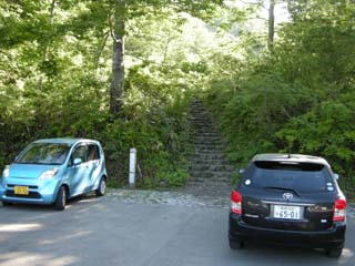 7:11 駐車場から出発 (右は鳥取ナンバー)