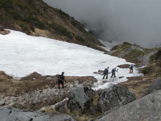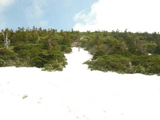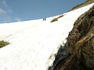9:35 12曲がりの階段を使わず、雪渓を直登!