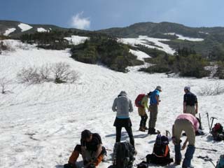 9:57 弥陀ヶ原の残雪はここまで(アイゼンを外す)