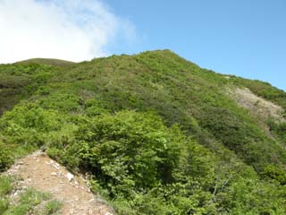 10:02 笹に捕まりながら下った急坂を、振り返る