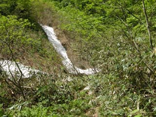 10:23 雪渓もある、水たまりもある、藪漕ぎもある