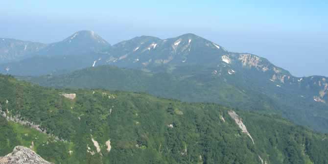 8:22 中央が明日登る火打山 (この景色を見ながら食事←朝食?)