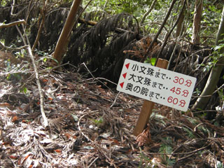 13:52 大村コースとの分岐(↑→右へすすむ)