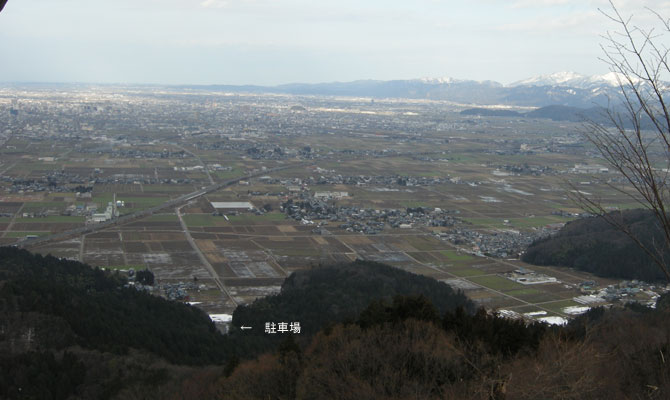 14:23 二上駐車場が見える 14:26 下山開始!