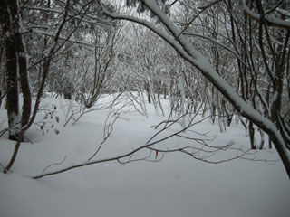 昨夜の新雪は頂上に近づくにつれ多くなり