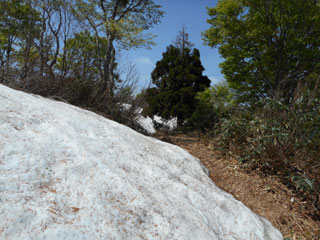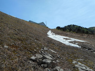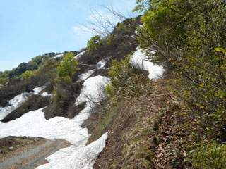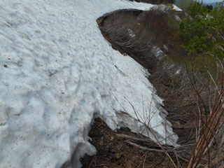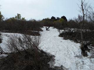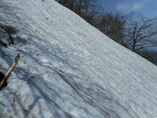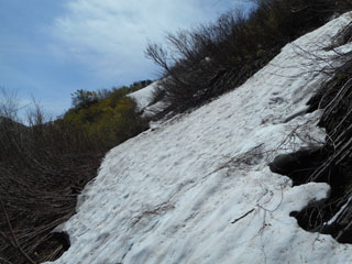 10:13 緩斜面は雪が切れる(アイゼンはそのまま)