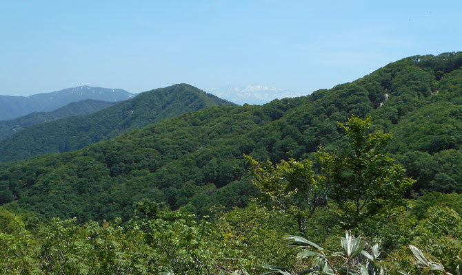 10:48 尾根から白山連峰がチラリ・・・