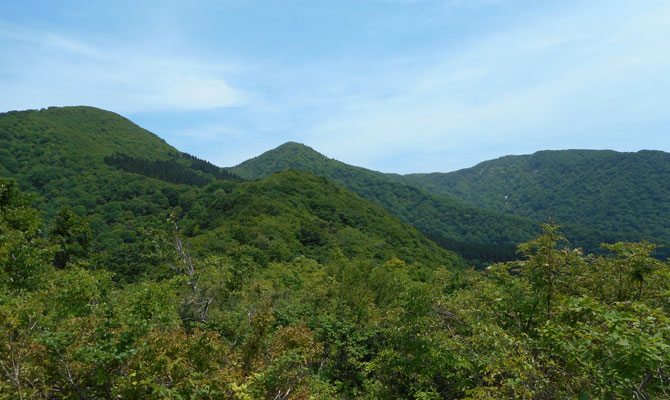 12:44 北丈競山、南丈競山、浄法寺山 〔三山の丈競 振り返って撮る)