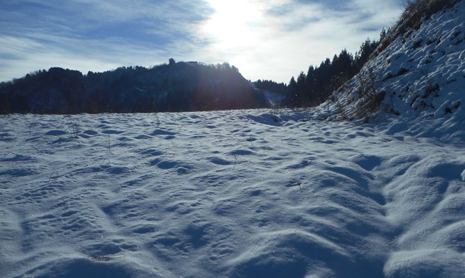 スノーシューの踏み跡はまったく期待できず、思い切り「がぼる!」